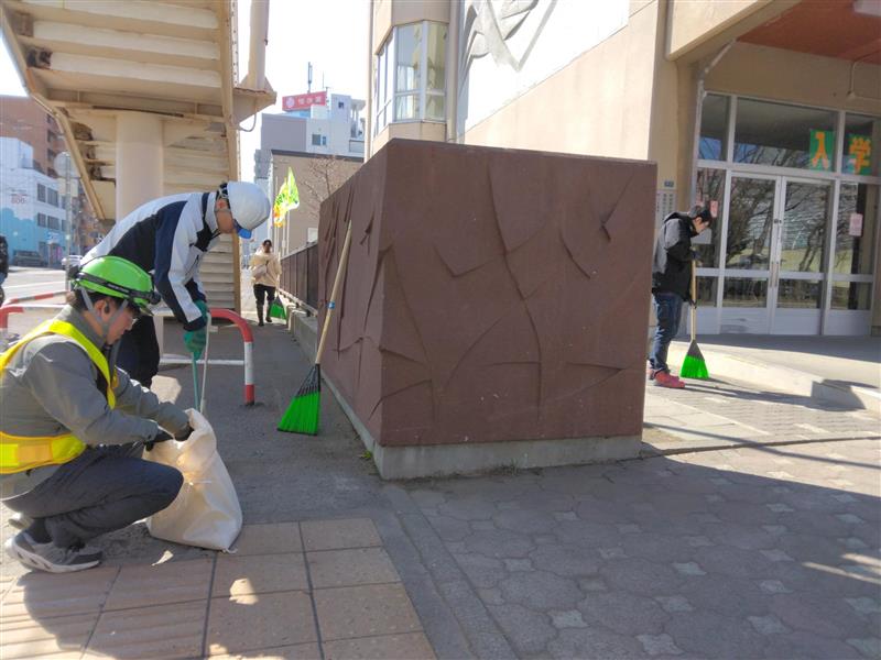 当日は天候に恵まれ弊社含め4社計7名で、札幌の伏見小学校にて清掃を行いました。